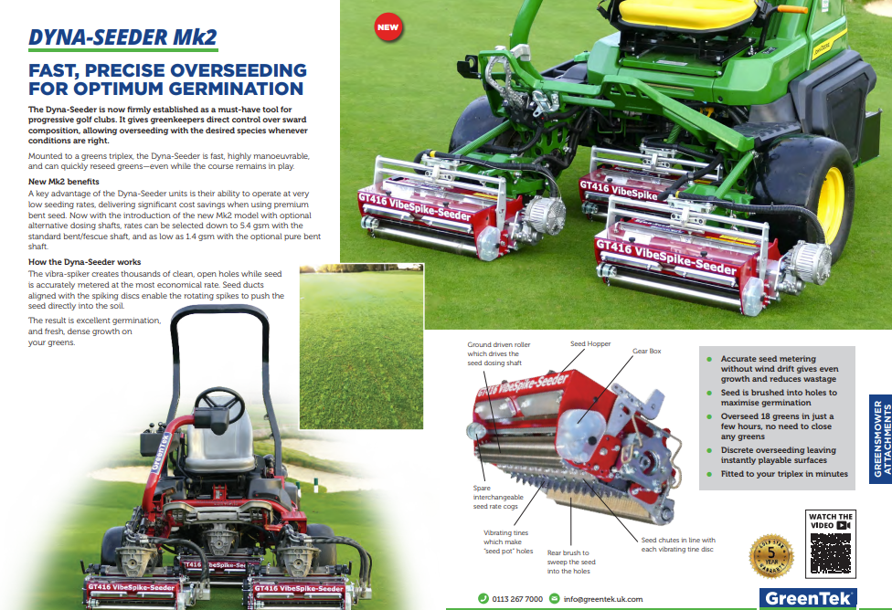 The Dyna-Seeder is now firmly established as a must-have tool for progressive golf clubs. It gives greenkeepers direct control over sward composition, allowing overseeding with the desired species whenever conditions are right.
